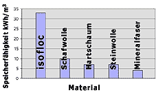 Dämmstoffe für den optimalen, ganzjährigen Wärmeschutz sollen eine kleine Wärme- und Temperaturleitzahl, gleichzeitig eine hohe Einbaudichte und eine hohe Wärmespeicherfähigkeit aufweisen.Produkte, die aus dem Rohstoff Holz hergestellt werden, erfüllen diese Kriterien. Holz hat eine hohe spezifische Wärmekapazität, die etwa zweieinhalb mal so groß ist wie die von silikatischen Materialien (Glas).Übliche Dachbaustoffe wie Massivholz, Holzwerkstoffplatten, aber auch Holzfaserplatten und Isofloc®-Zellulosedämmstoff sind deshalb für den sommerlichen Wärmeschutz sehr geeignet.